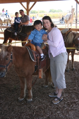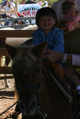 Nealy riding a pony... again not sure if she was going to like it, but she smiled more than on the swings.