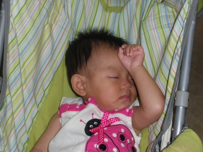 We love the stroller and the effect that it has on Nealy. She fights going to sleep especially when she is over tired. So after a couple of laps of the floor in the stroller, it is lights out!