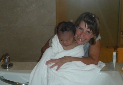We can't believe it's been a week since we were blessed with the addition of Nealy to our family and the progress she's made in her development during this short time. A week ago, she was barely able to hold up her head on her own and now she's sitting by herself and even pulling herself up to stand! Even the conversations with the other adoptive families is growing less and less about poopy diapers and more about the children's development.