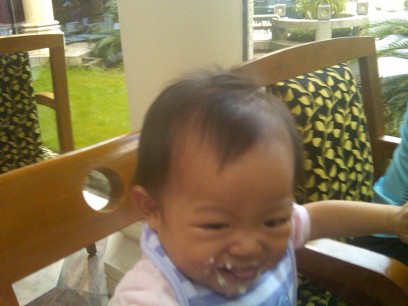 Nealy enjoying her favorite breakfast, spare rib flavored congee. Anyone know where we can find this in St. Louis?